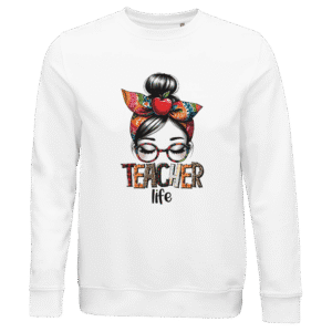 Sudadera mujer ecológica “Teacher Life” cuello redondo