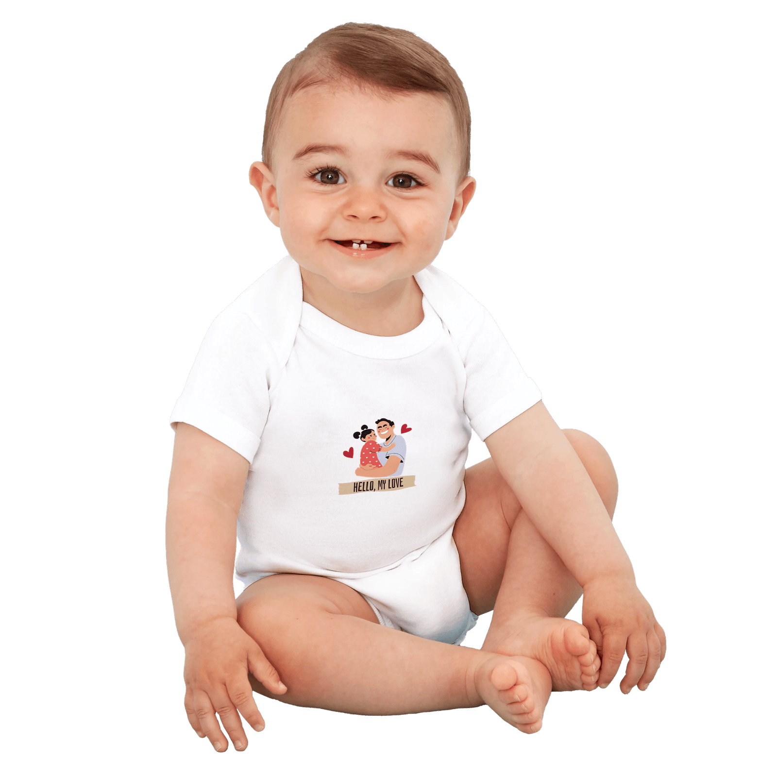 Body ecológico de manga corta para bebé “Hello My Love” | Blanco