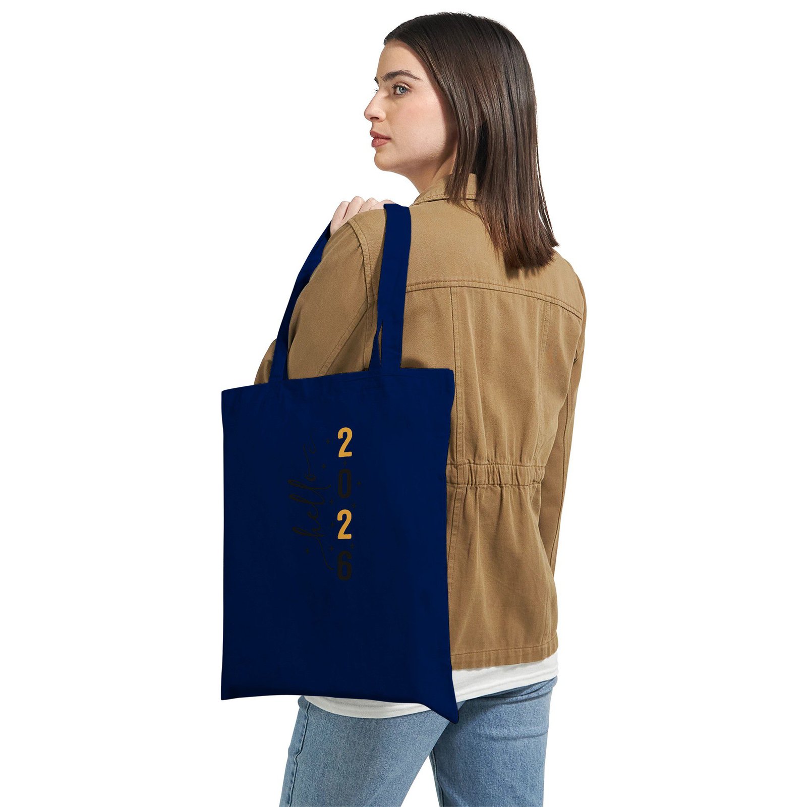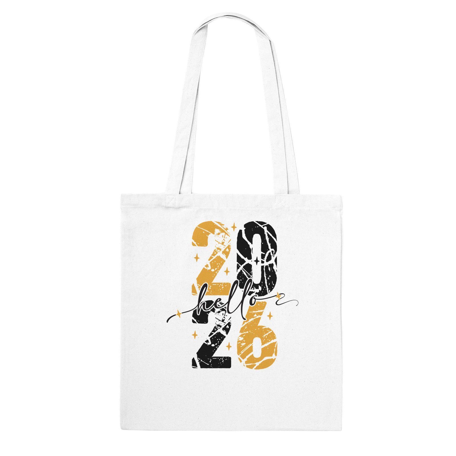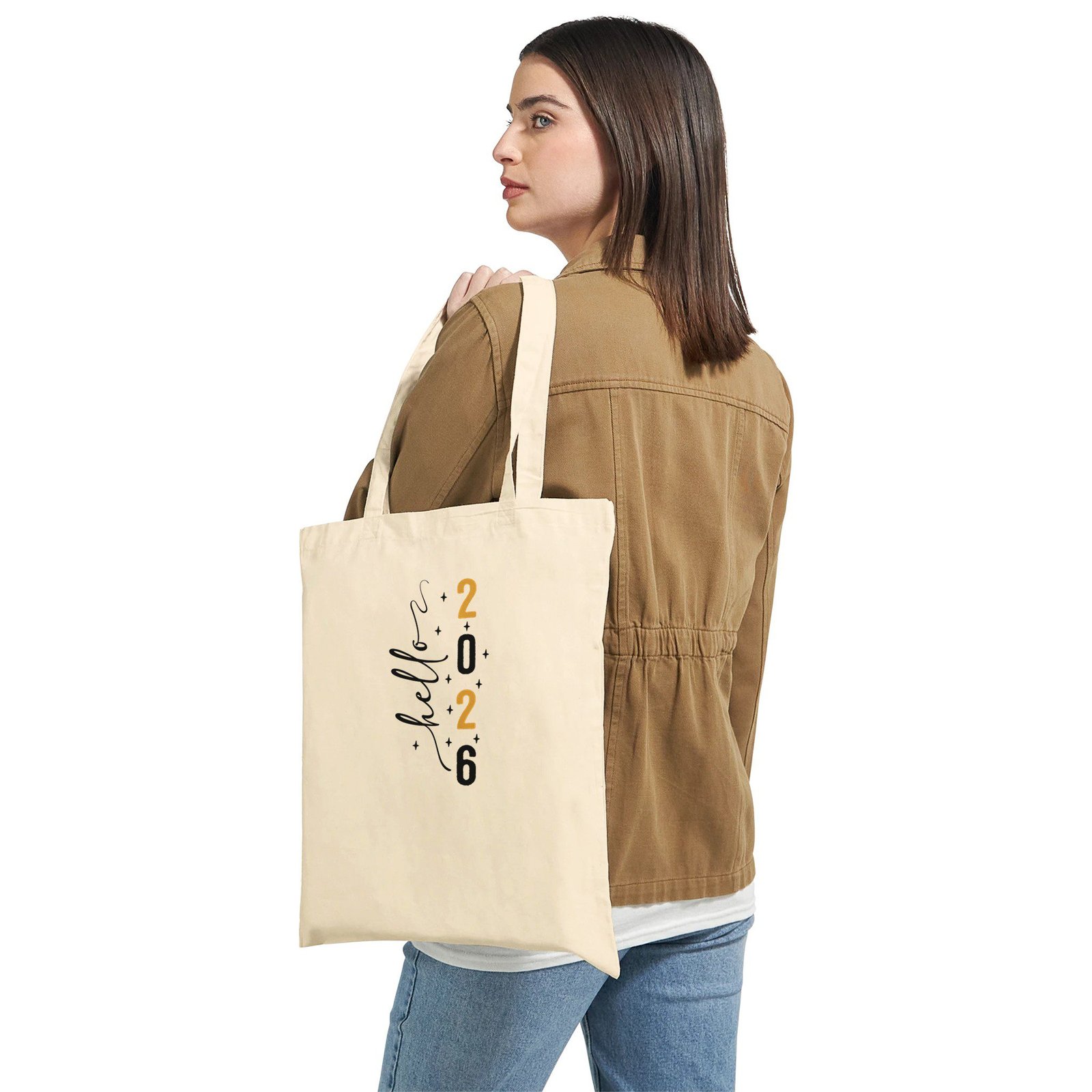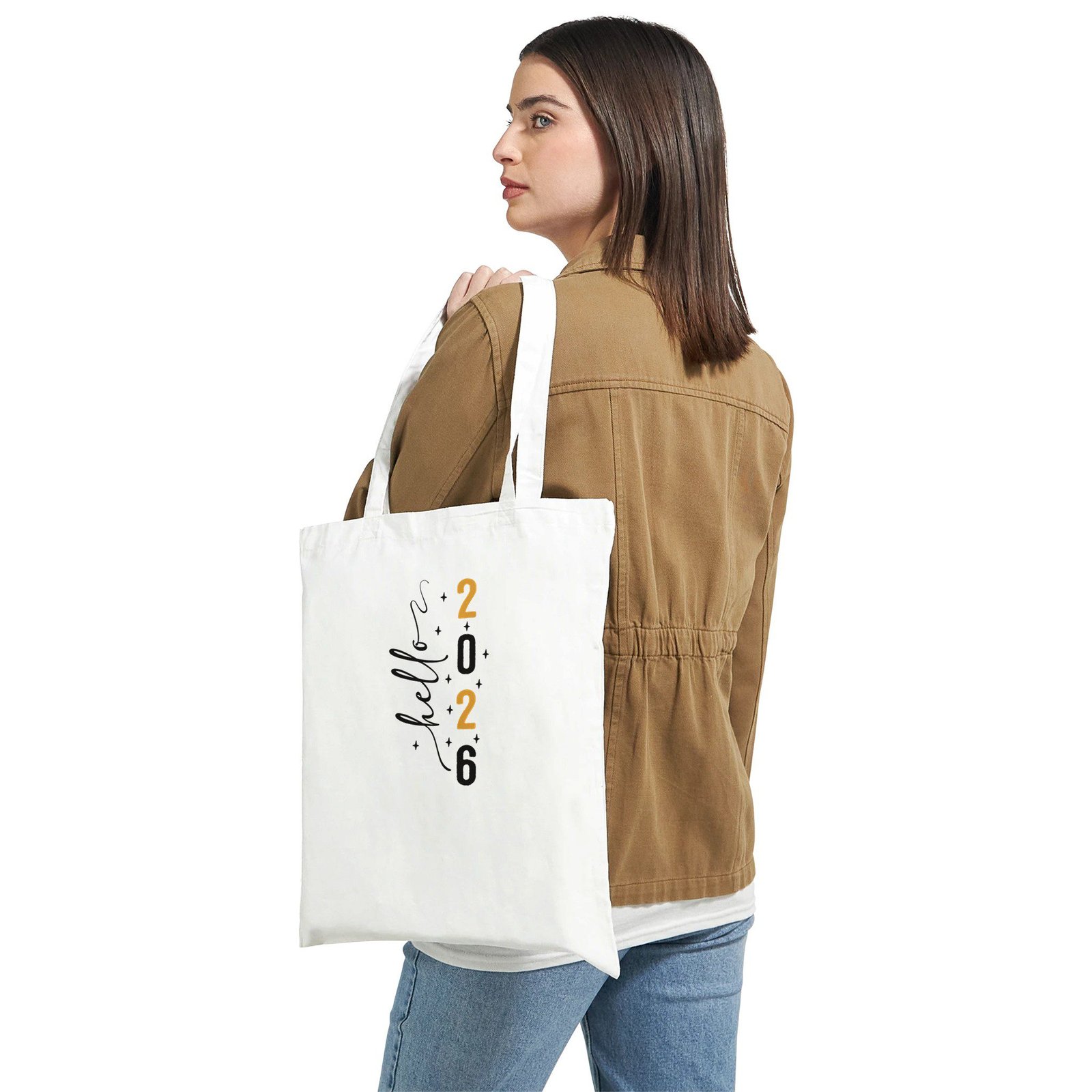 Bolsa de tela de algodón con diseño “Hello 2026”. Elegante, ligera y perfecta para el día a día.
