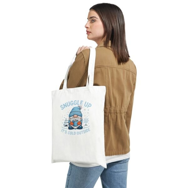 Bolsa de tela de algodón con diseño invernal “Snuggle Up”. Resistente, reutilizable y perfecta para el día a día.
