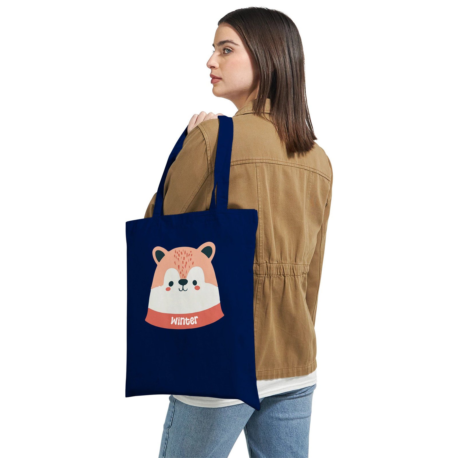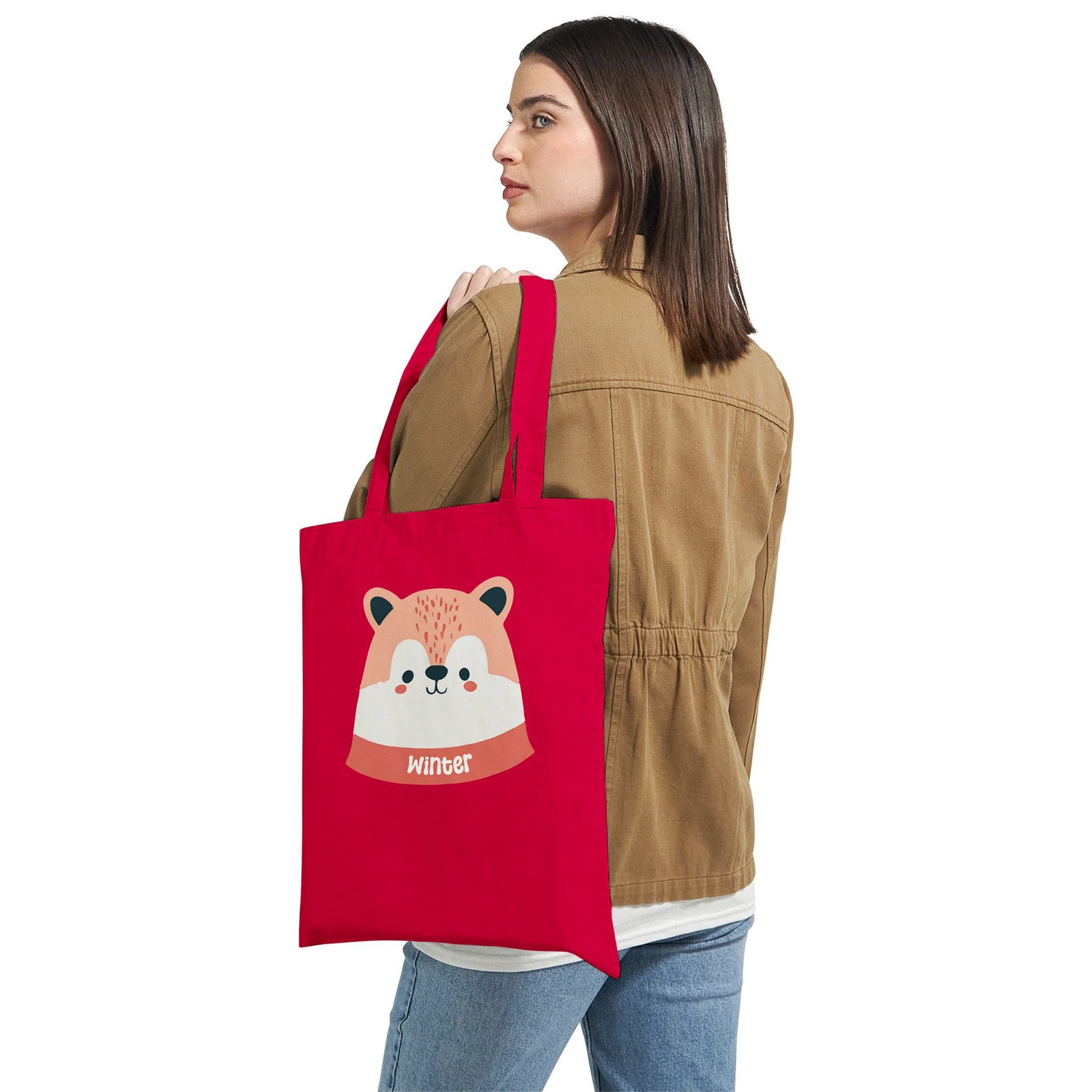 Esta bolsa de tela con diseño de zorro “Winter” es ideal para quienes buscan un complemento práctico con un toque dulce y estacional. Su ilustración de un zorro con estética invernal aporta calidez y encanto, perfecta para los meses fríos o para amantes de los diseños tiernos y minimalistas.