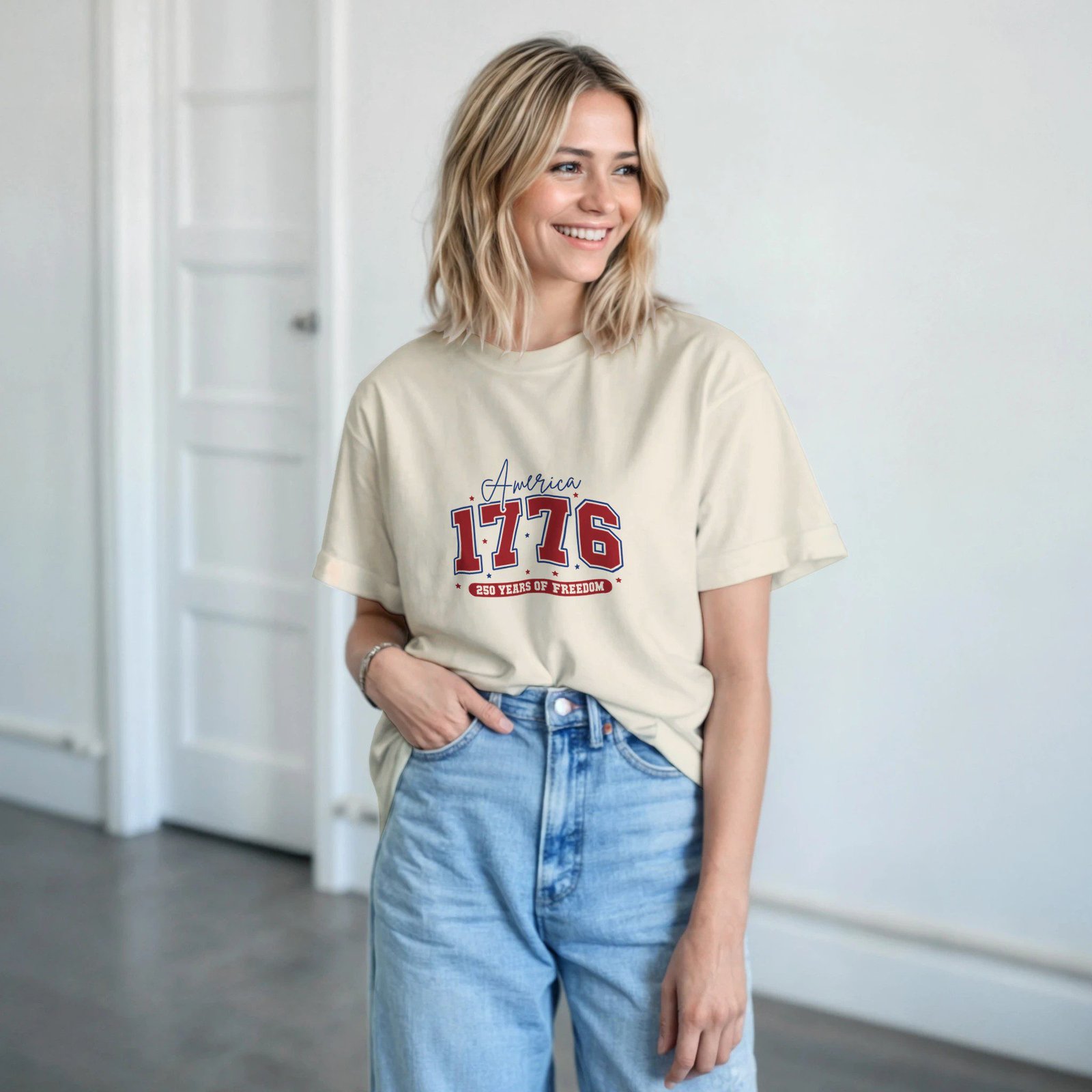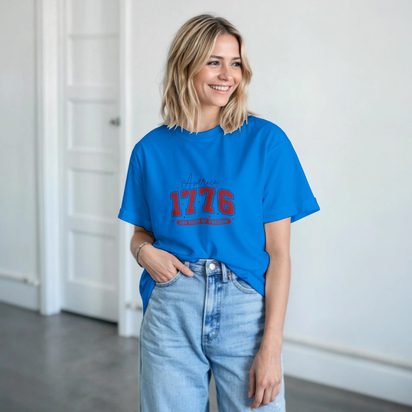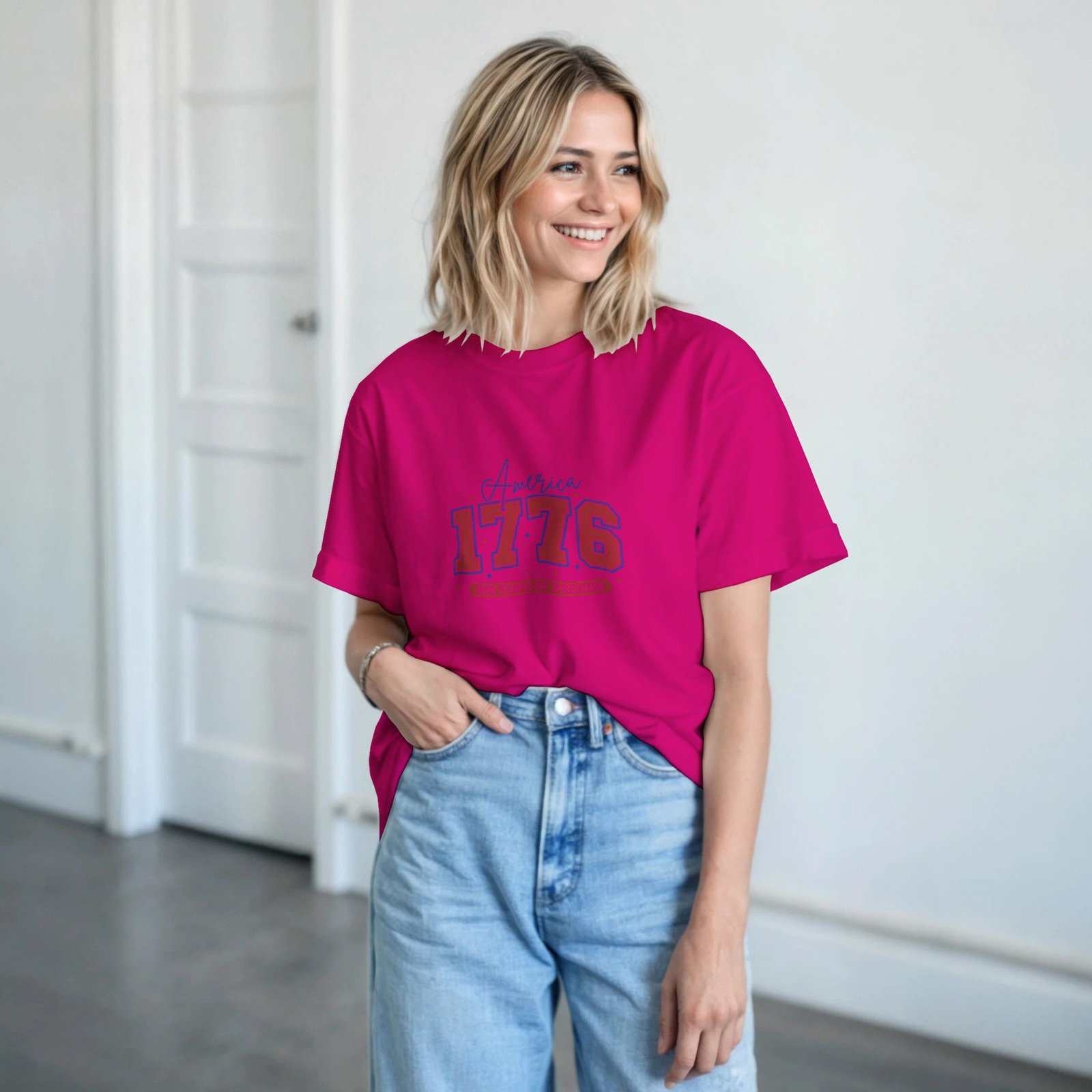 Añade un toque clásico y atemporal a tu estilo con esta camiseta de algodón con diseño “America 1776”, inspirada en la estética vintage americana. Su diseño sencillo y llamativo la convierte en una prenda perfecta para un look casual y cómodo.