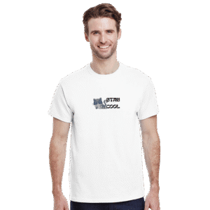 Fabricada con tejido de alta densidad, esta camiseta Gildan 5000 garantiza durabilidad, comodidad y un bordado limpio que resalta sobre el fondo blanco. Además, su corte clásico y su ajuste unisex la convierten en una prenda versátil para cualquier persona.