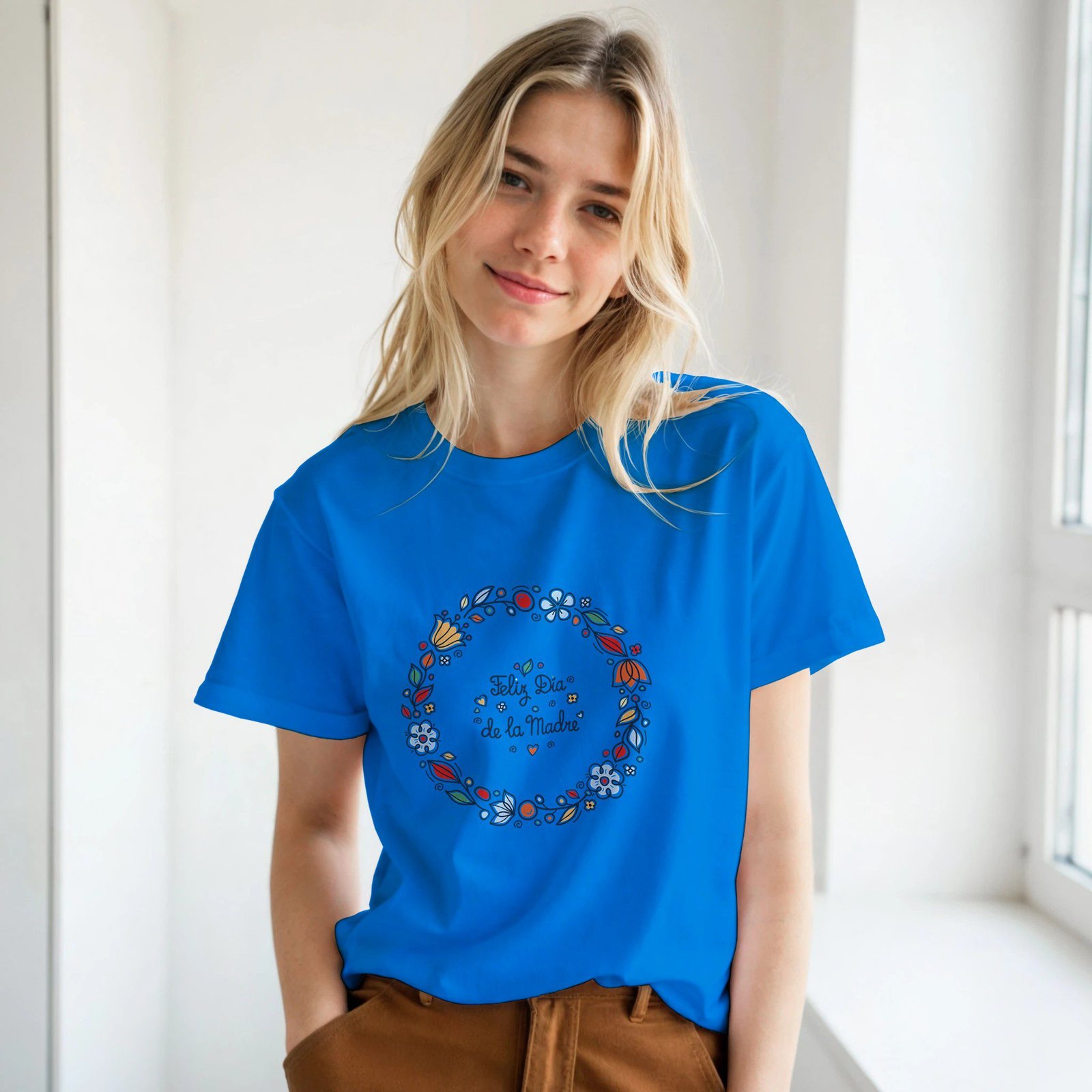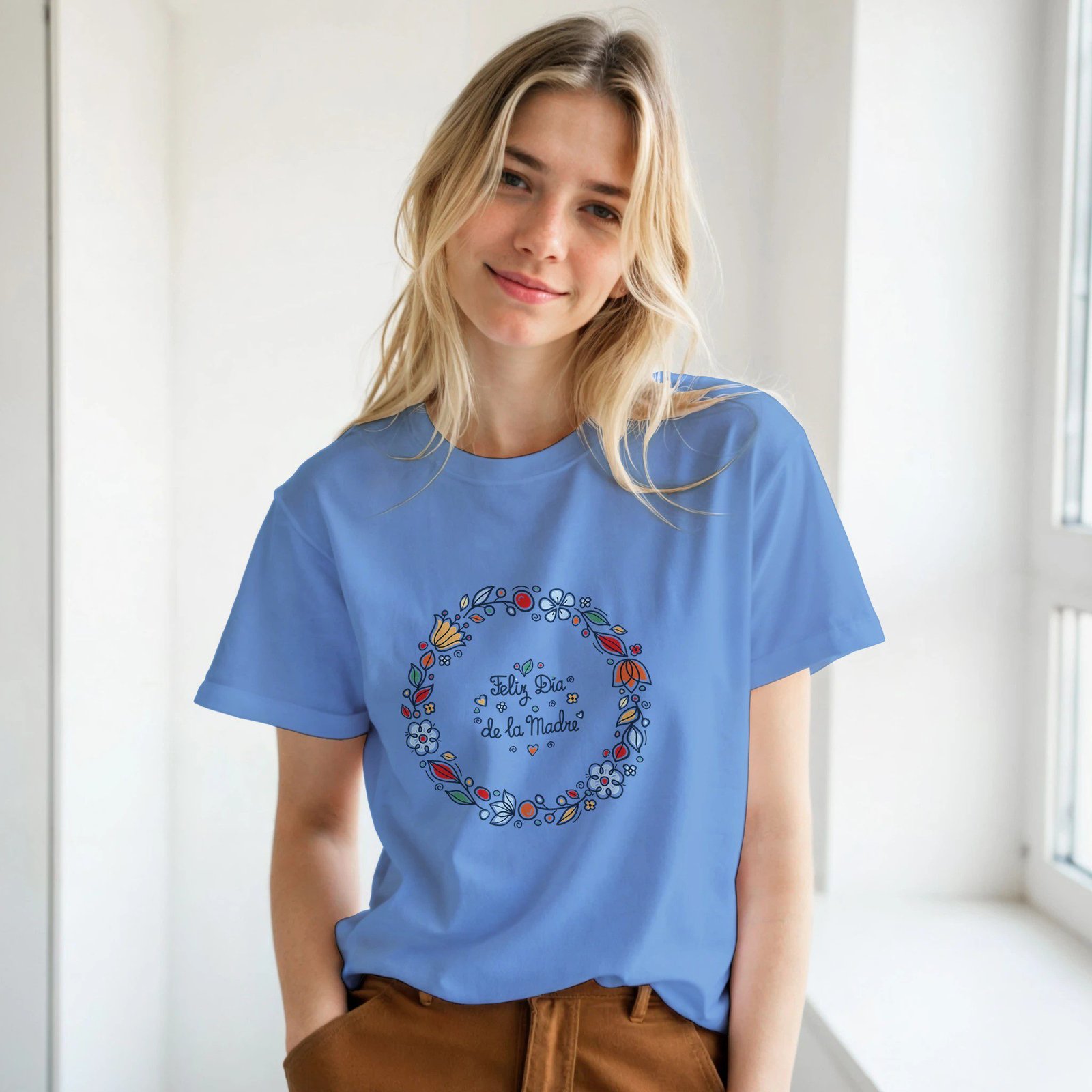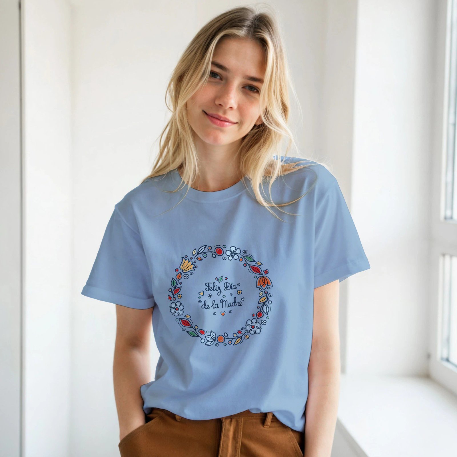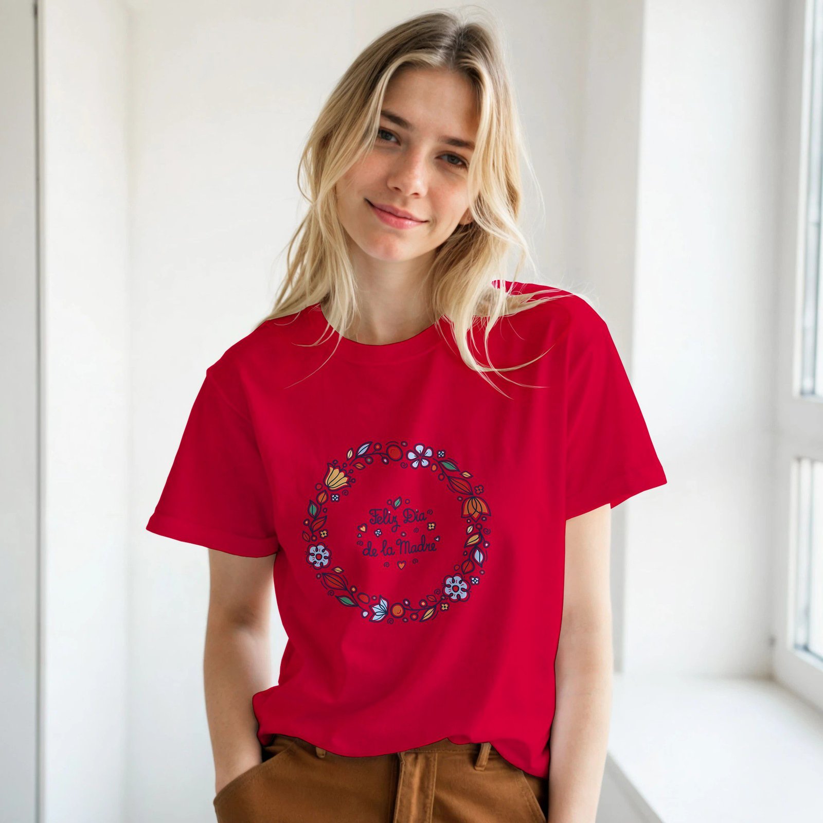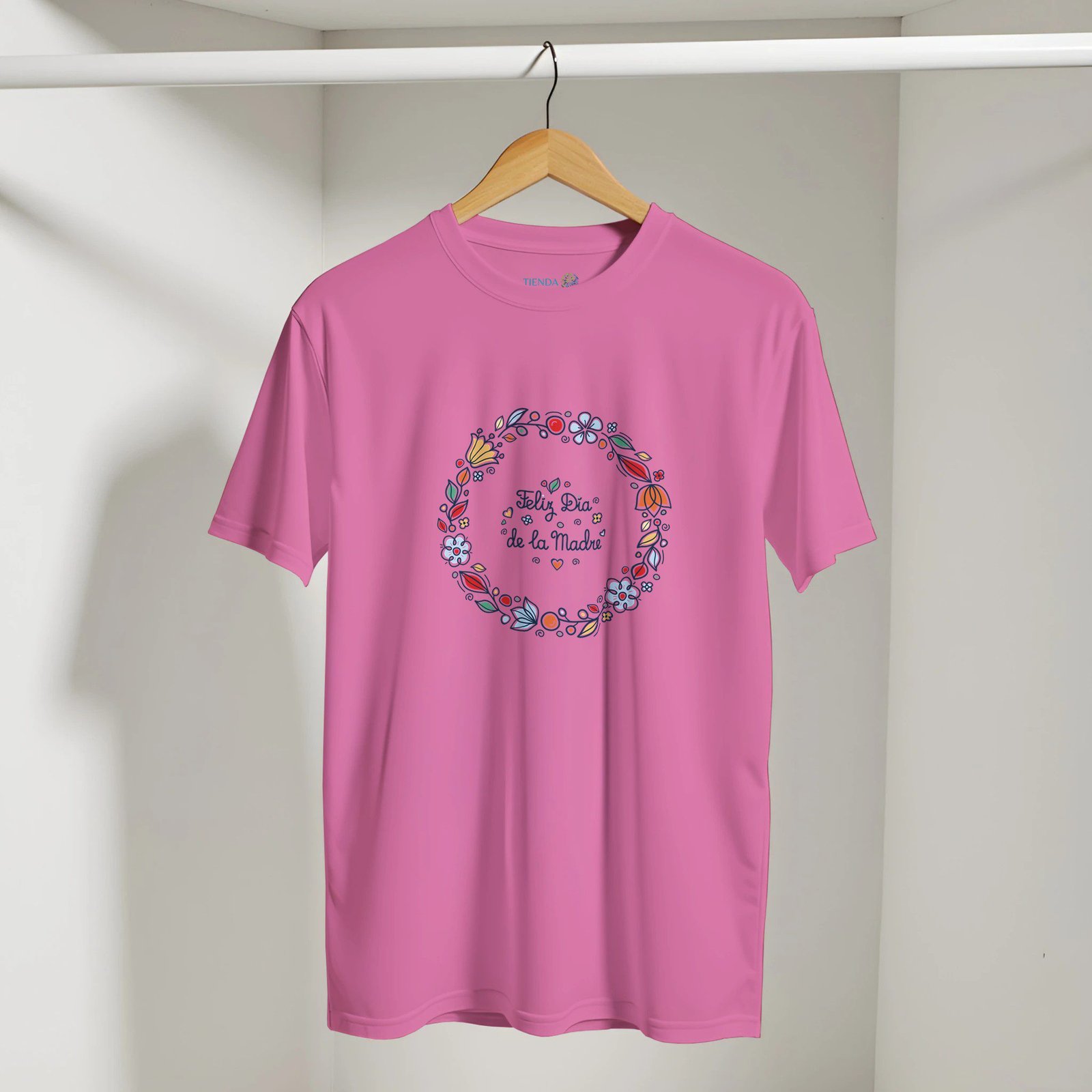 Celebra el amor de mamá con esta camiseta con diseño floral y el mensaje “Feliz Día de la Madre”, una prenda especial pensada para transmitir cariño y gratitud.