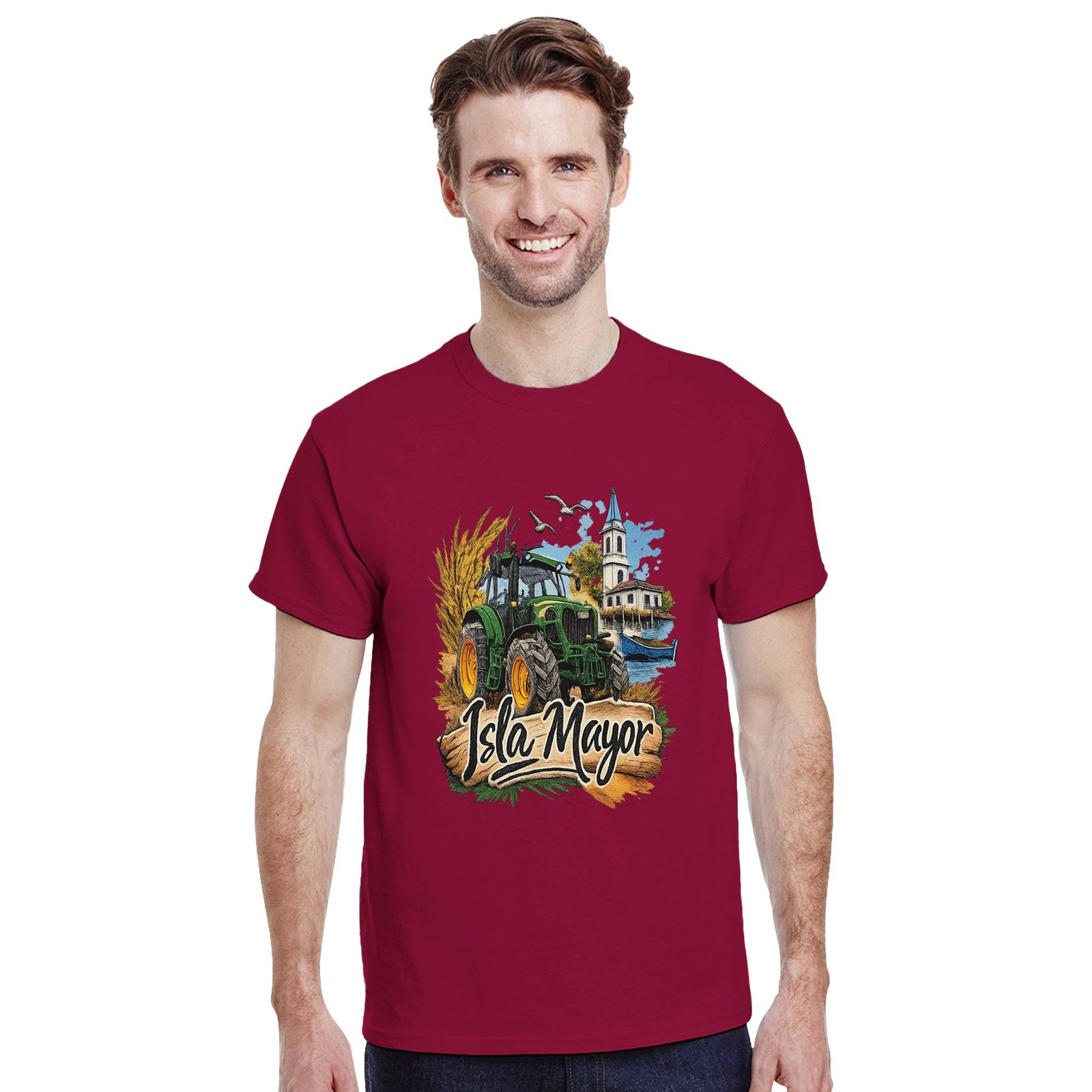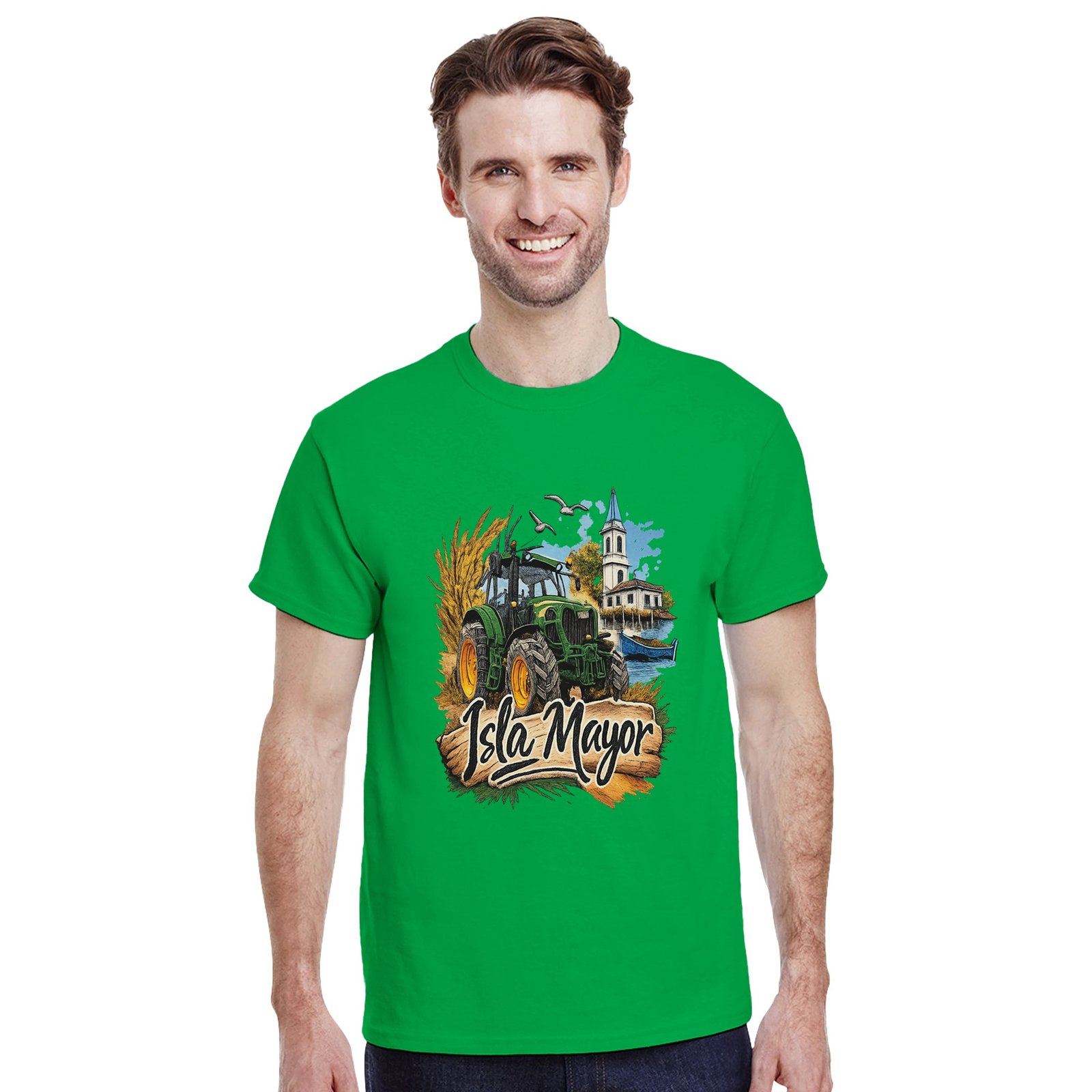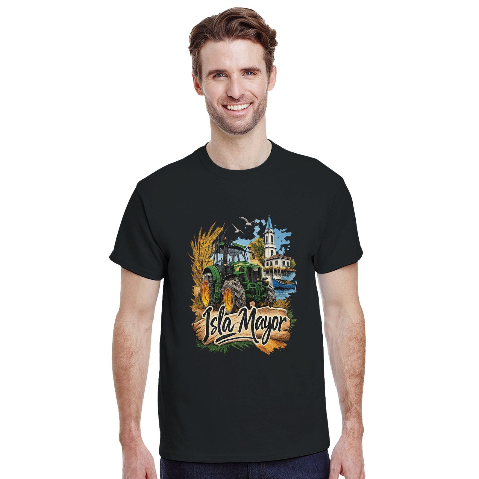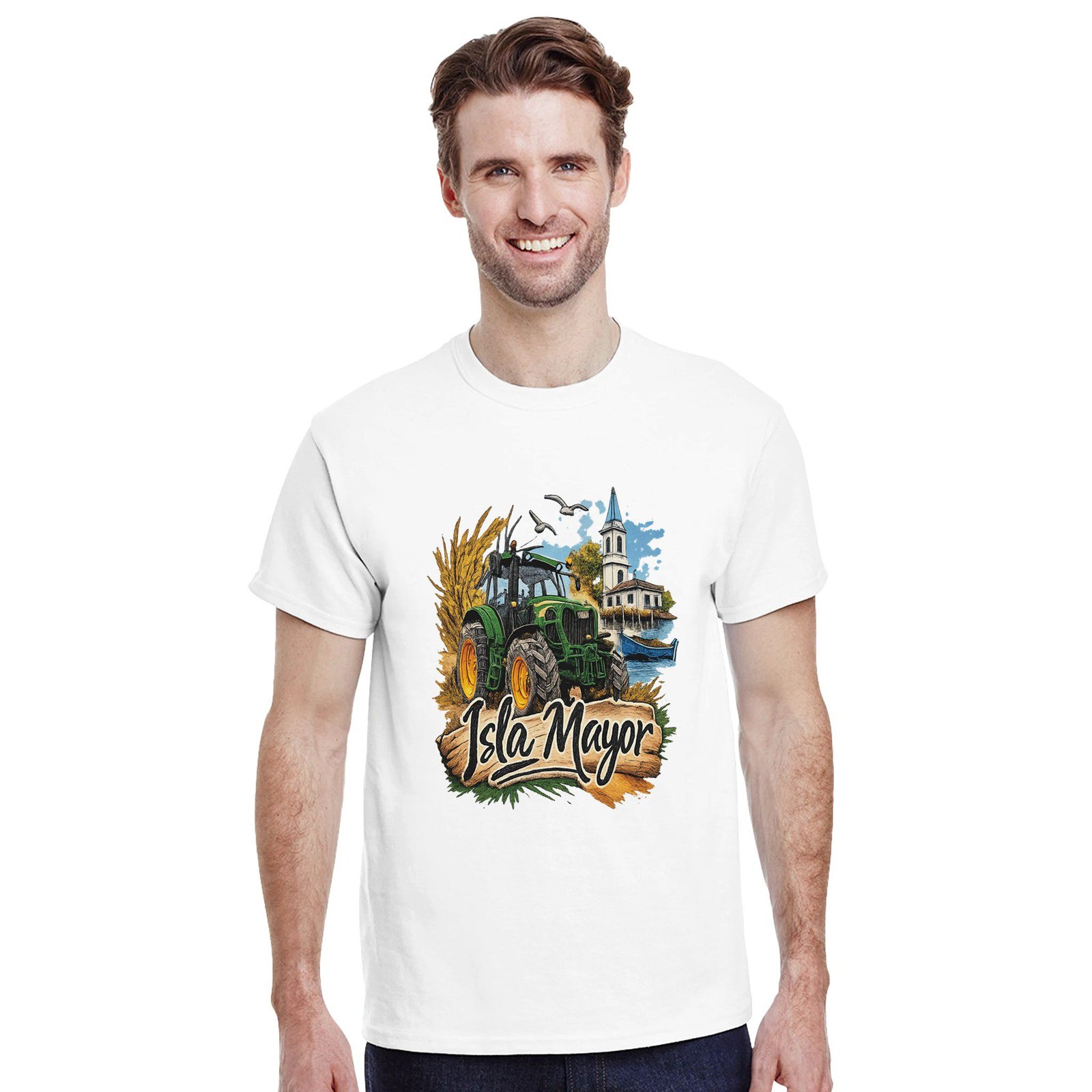 Una camiseta ideal para llevar con orgullo la identidad de Isla Mayor y su tradición agrícola.