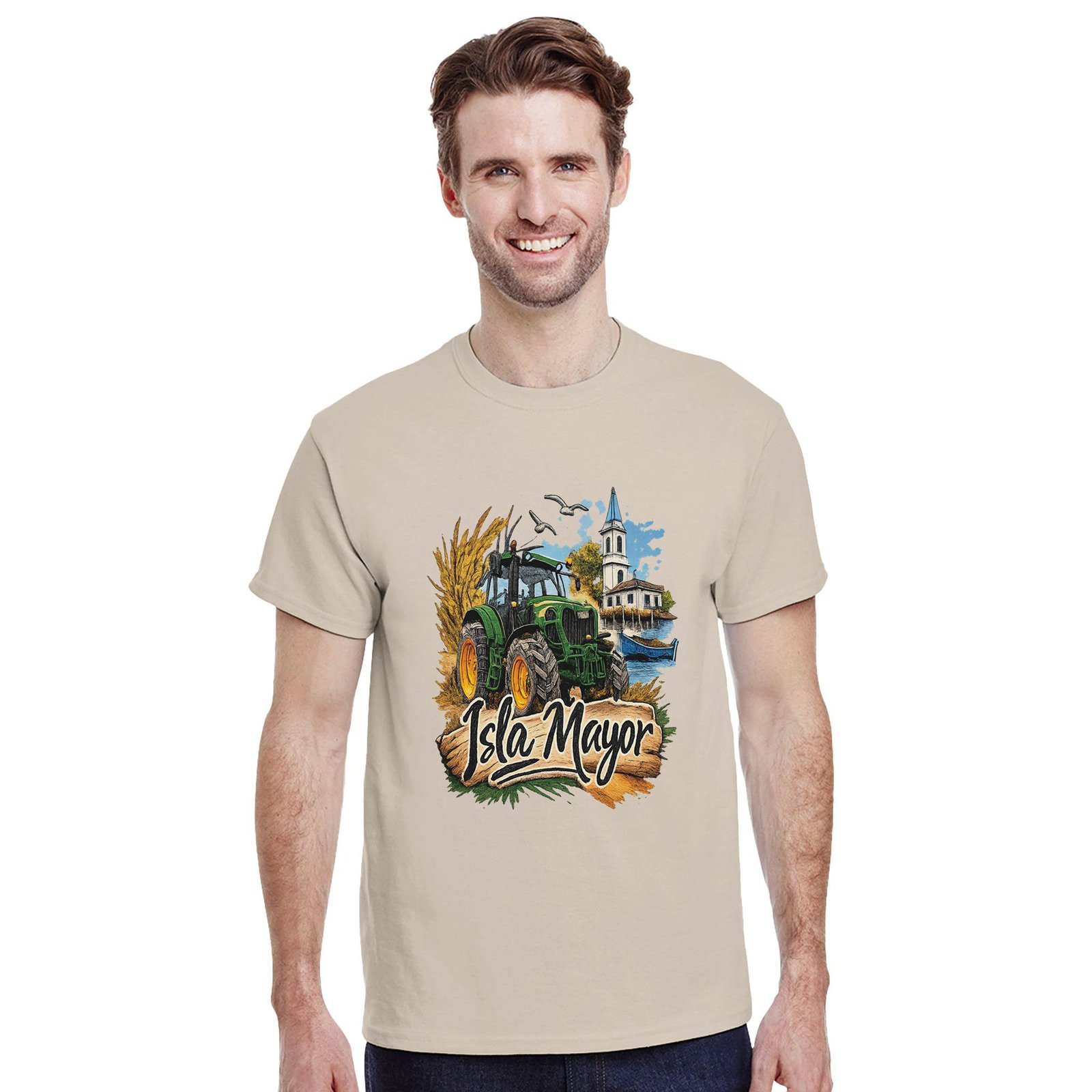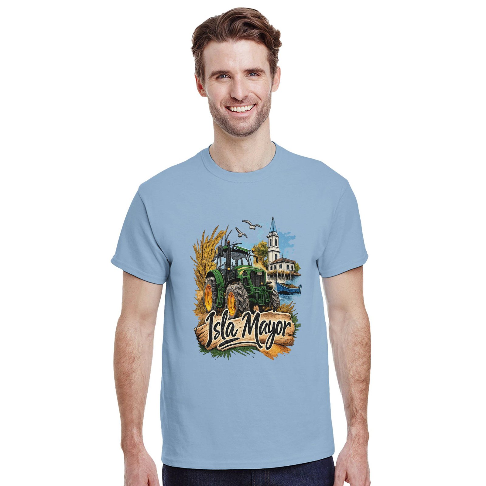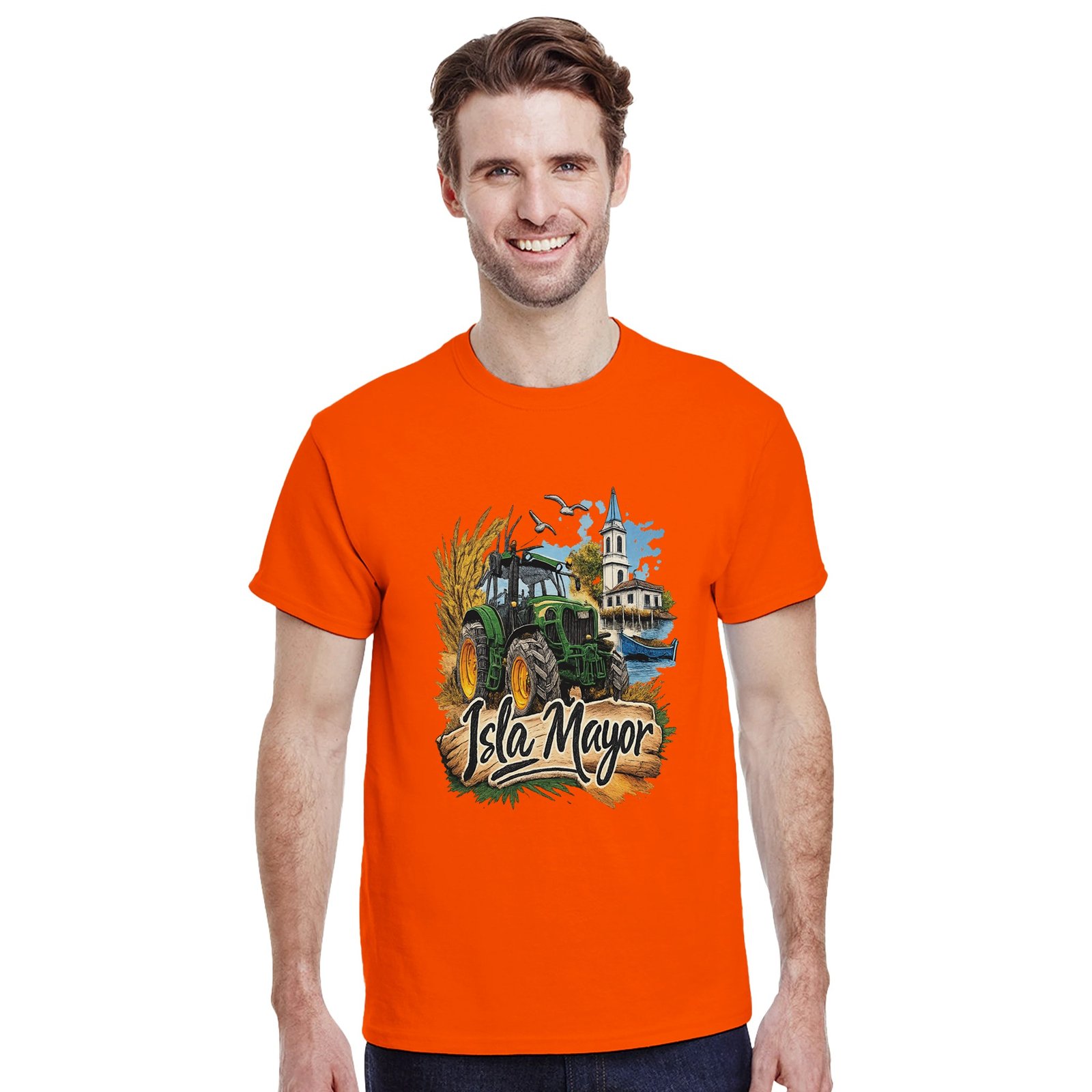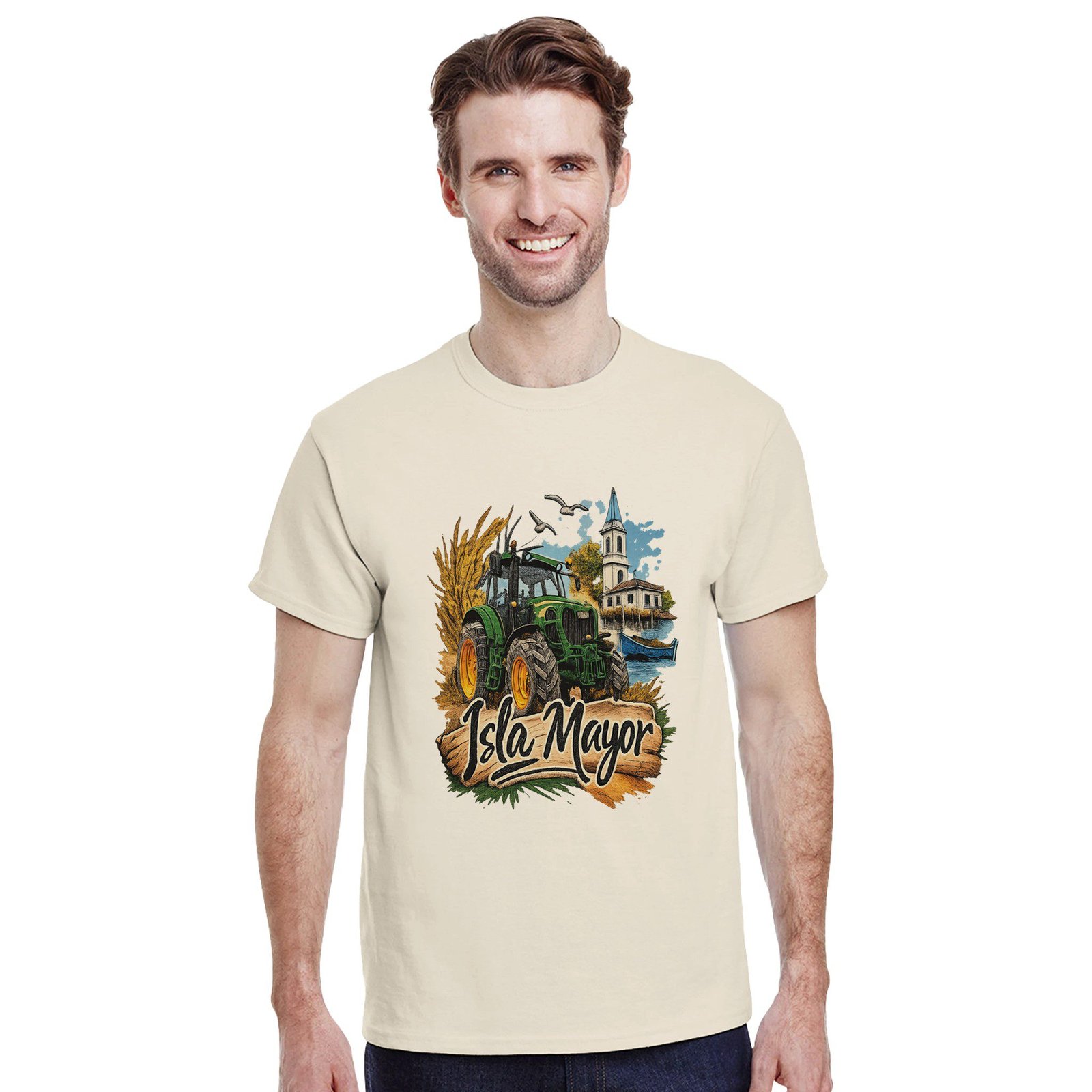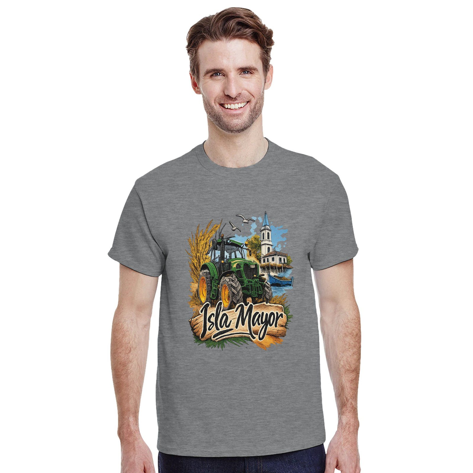 Una camiseta ideal para llevar con orgullo la identidad de Isla Mayor y su tradición agrícola.