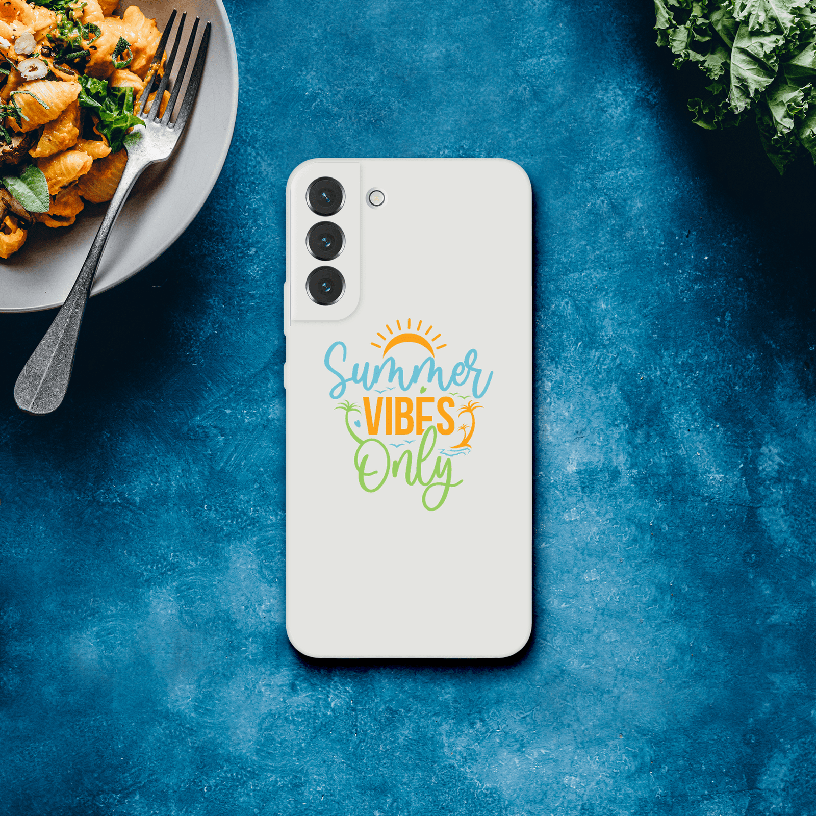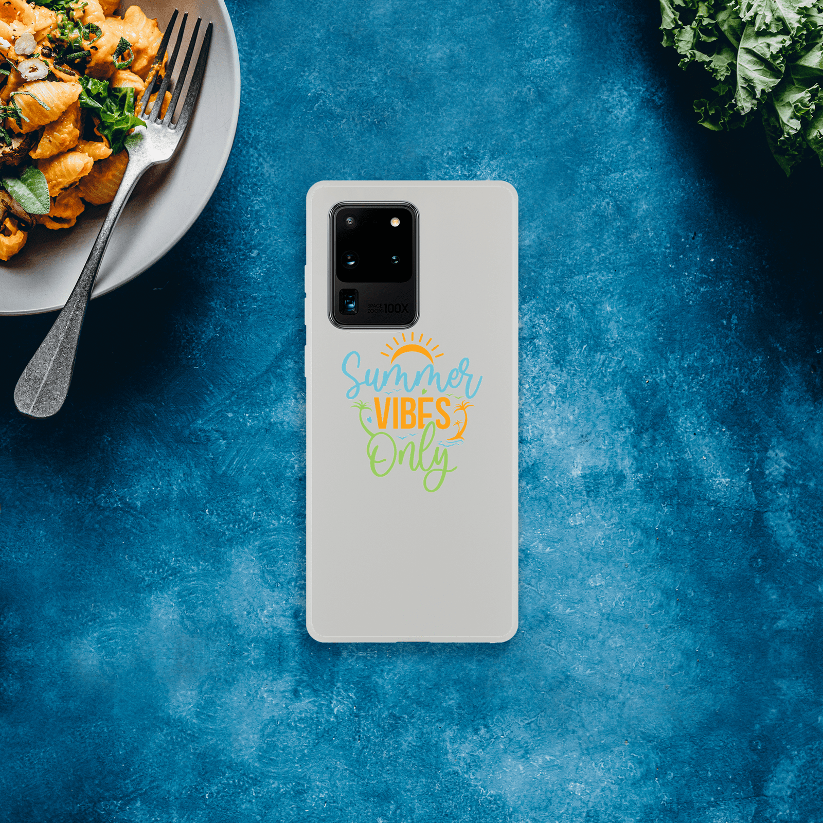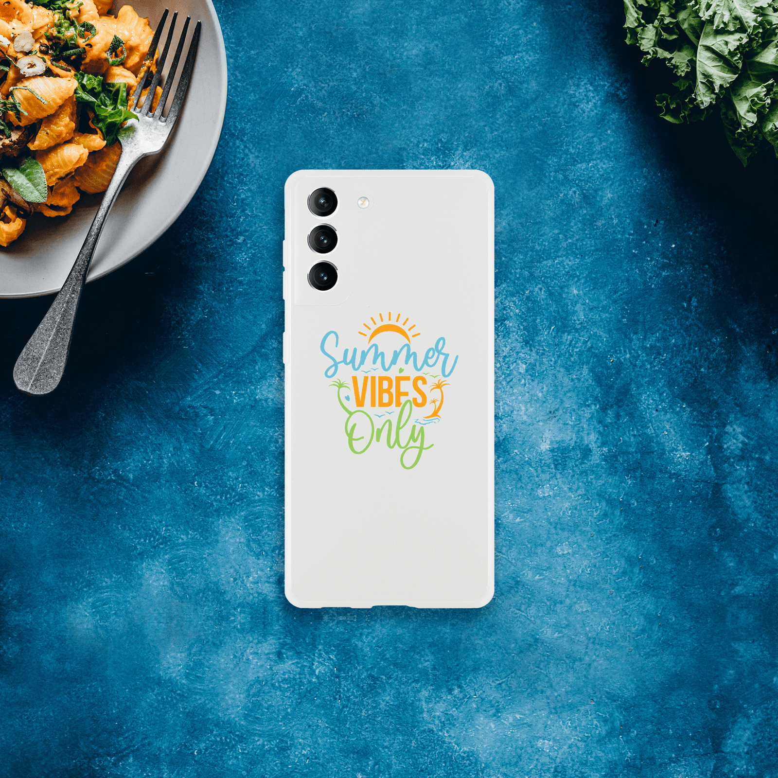 Protege tu Samsung Galaxy con estilo gracias a la Carcasa Flexi personalizada “Summer Vibes Only”. Fabricada en TPU flexible y resistente a impactos, ofrece una protección ligera y duradera sin ocultar el diseño original del teléfono. Su acabado satinado y el estampado veraniego le dan un toque fresco y único.