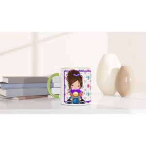 El interior, el asa y el borde están disponibles en diferentes colores para aportar un toque divertido y único. La impresión de alta calidad resalta con nitidez sobre el acabado brillante de la taza y conserva su color y brillo incluso tras múltiples lavados en el lavavajillas o al calentar en el microondas.