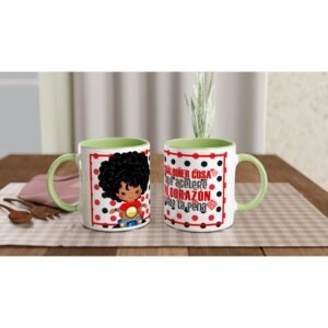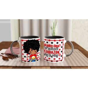 Fabricada en cerámica brillante de alta calidad, ofrece una superficie de impresión clara y duradera que mantiene sus colores vivos incluso después de muchos lavados. Es apta para microondas y lavavajillas, lo que la convierte en una elección cómoda y resistente para el día a día.
