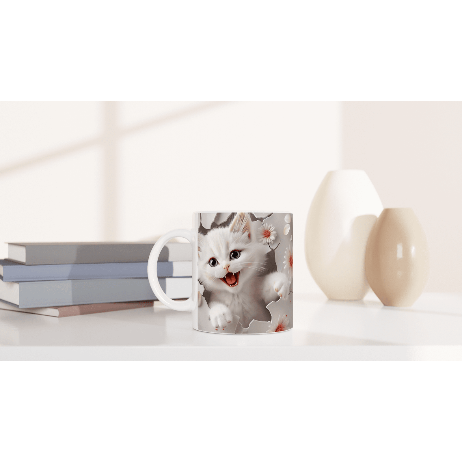 Disfruta de tus bebidas favoritas con esta adorable taza de cerámica de 325 ml con un encantador diseño de gatito en 3D. Ideal para café, té, chocolate caliente o cualquier momento especial del día.