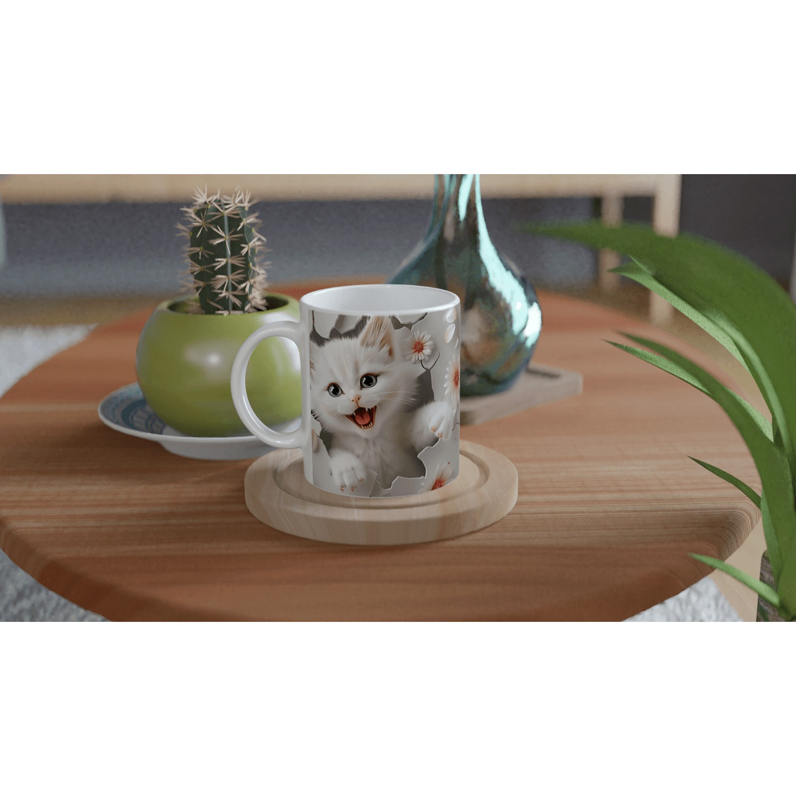 Fabricada en cerámica blanca brillante, esta taza realza cada detalle de la impresión, ofreciendo colores nítidos y duraderos. Además, es apta para microondas y lavavajillas, por lo que combina diseño y funcionalidad en tu rutina diaria.