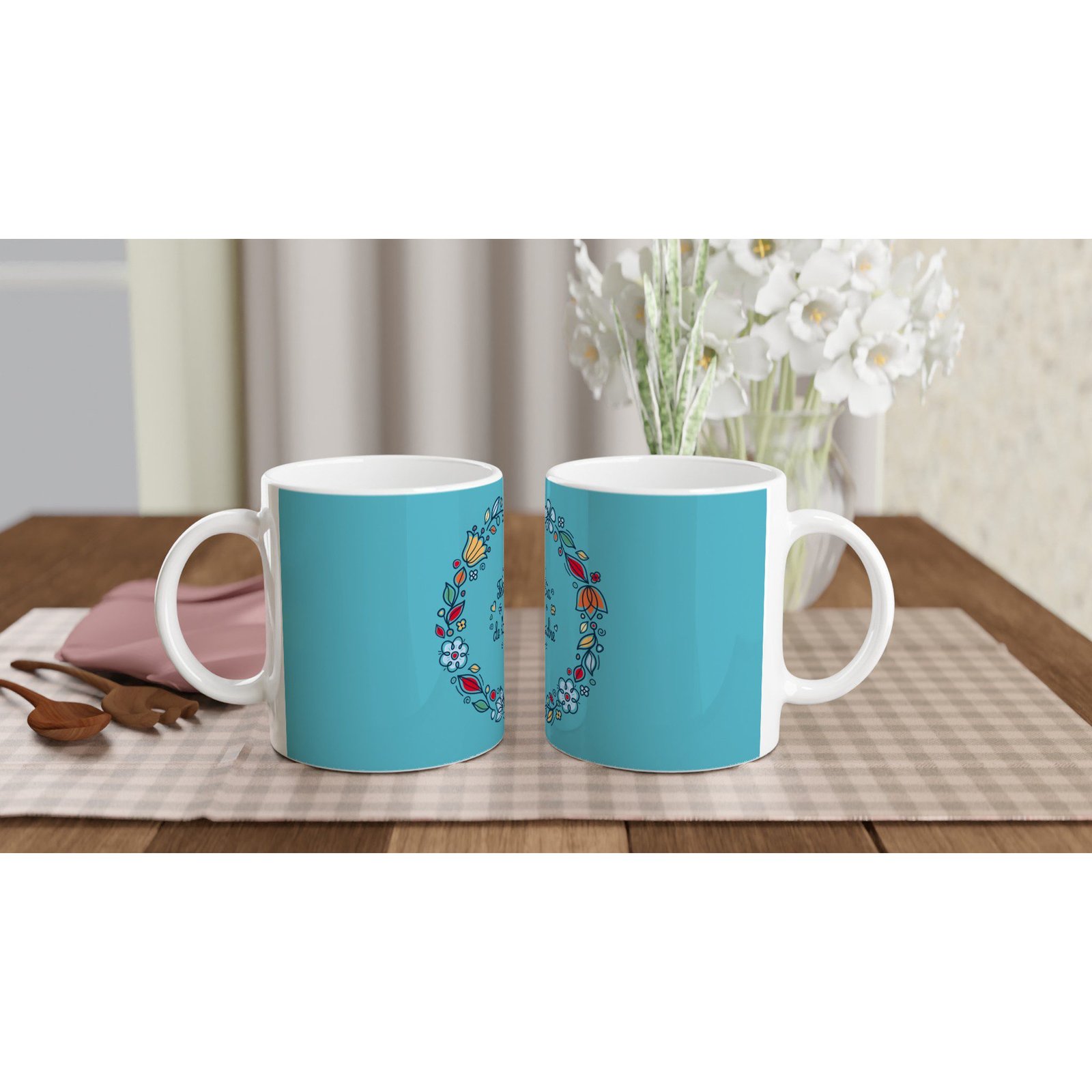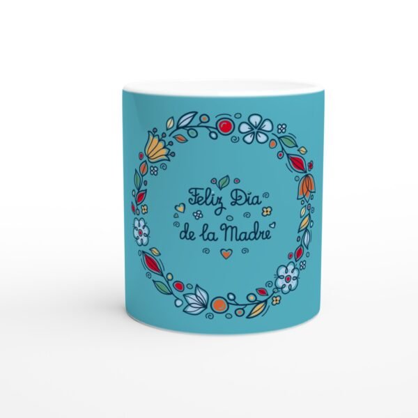 Celebra el amor y la dedicación de mamá con esta taza de cerámica con diseño floral y el mensaje “Feliz Día de la Madre”. Su bonito marco de flores de colores rodea el mensaje central, creando un diseño alegre y lleno de significado.