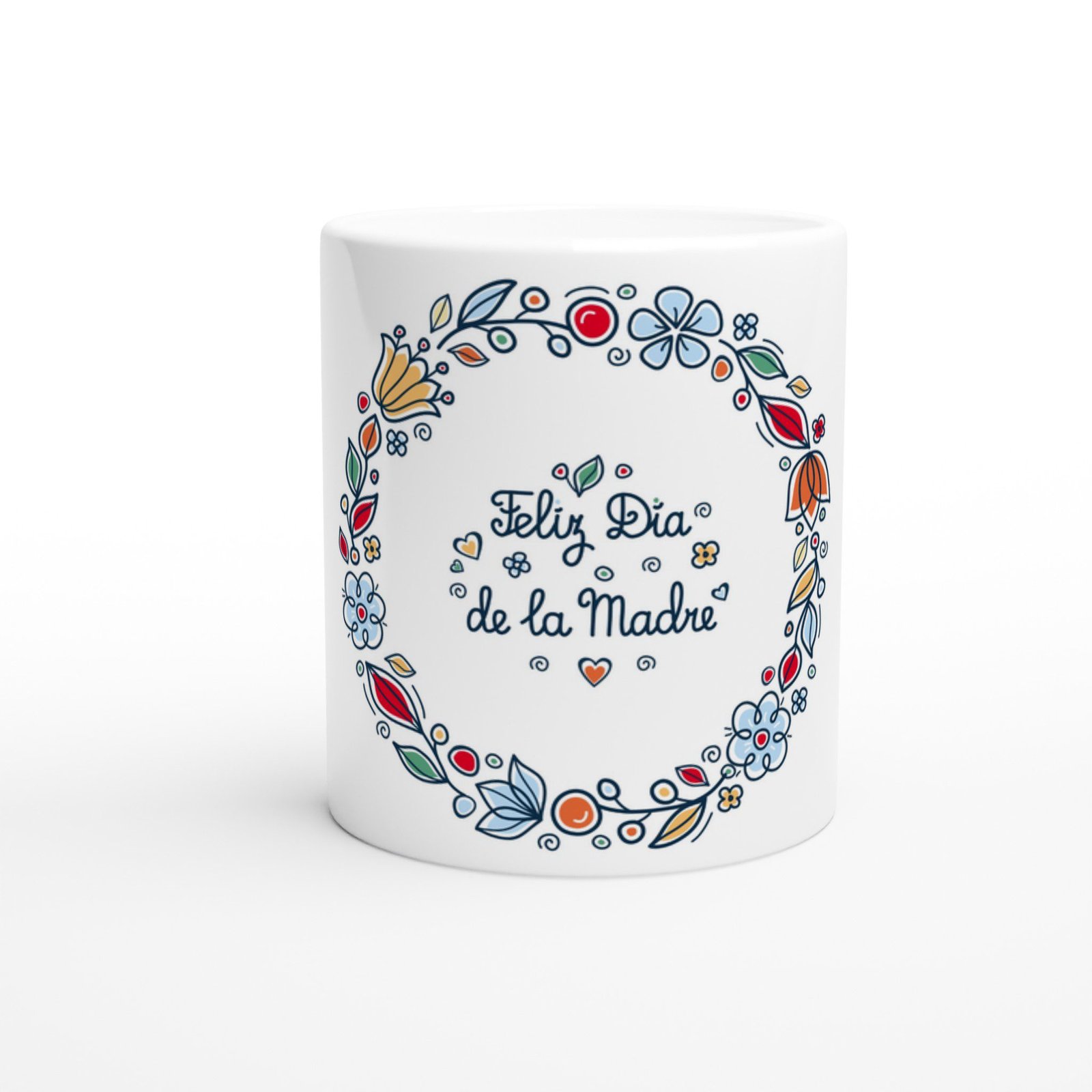 Celebra el amor de mamá con esta taza de cerámica con diseño floral y el mensaje “Feliz Día de la Madre”. Su bonito marco de flores de colores rodea el mensaje central, creando un diseño alegre y delicado que transmite cariño y gratitud.